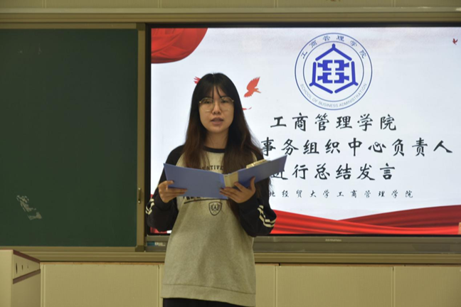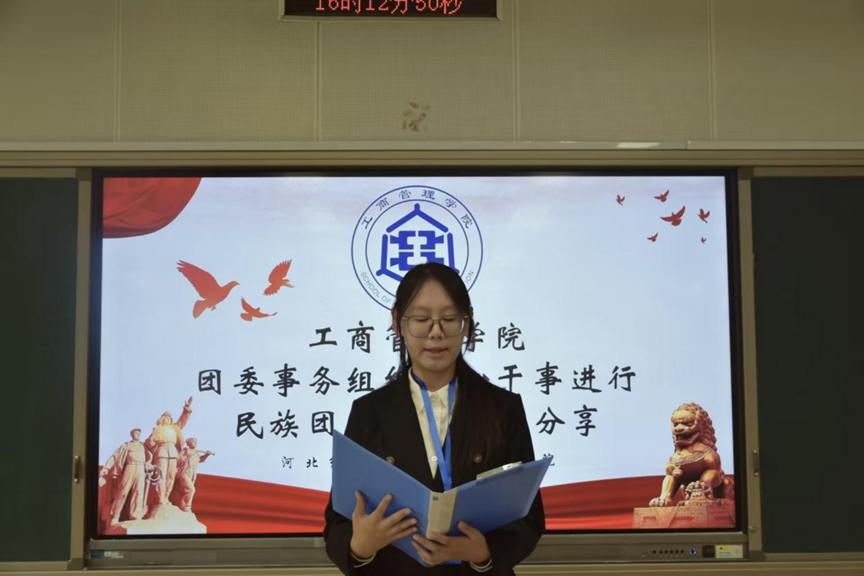 随后,少数民族员工代表李嘉懿结合自身经历分享了对于民族团结的深切感悟。作为满族员工,她以民族文化符号为切入点,讲述了各民族文化交融共生的和谐之美。她提到,在学院学习生活中,汉族室友帮忙查找民族特色品牌案例、节日里互享民族美食等日常点滴,让她深刻体会到“各民族一家亲”的温暖。她倡议青年学子做民族文化的讲解员,主动挖掘、分享各民族优秀文化,打破认知壁垒;争做团结实践的行动者,从课堂互助、生活帮扶等小事做起,把团结情谊落到实处;勇做担当使命的奋斗者,将民族团结信念融入专业学习与未来发展,用青春力量助力各民族共同进步。