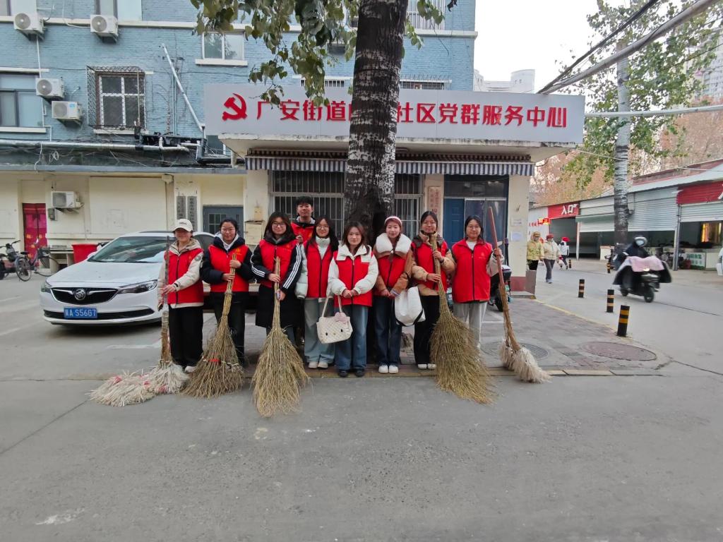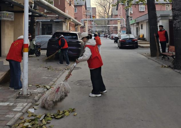 秋末冬初,棉四生活区树木落叶进入集中堆积期,不仅影响社区环境卫生整体质量,雨天潮湿的落叶更对居民出行安全形成潜在风险,成为社区环境治理的突出问题。学院提前与社区居委会开展专项对接,通过实地调研明确清扫区域边界,结合人员专业特长细化分工方案,制定安全作业准则,并统一配备扫帚、垃圾袋等清洁工具,为清扫工作的规范化、高效化推进筑牢基础。