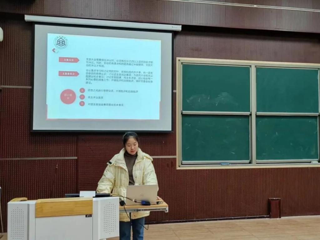 会议伊始,王瑗从中国共青团的发展历程、指导思想、现阶段基本任务和团的义务、责任、性质、团徽、团旗等方面,向入团积极分子作了详细的介绍。接着,王瑗重点讲解中国共产主义青年团章程,并播放了团的十九大报告视频。最后,为大家针对入团申请书的写法作了相关辅导。