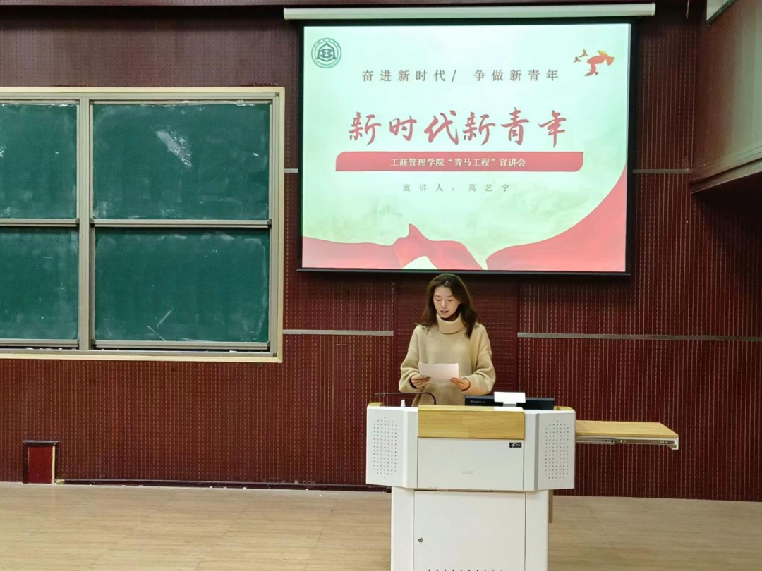 汇报人刘树状以“多线齐进育青年,青春年华谱新篇”为主题,分享了自己的青马培训经历,他从个人素养的培养、学习能力的培养、工作能力的培养以及如何协调处理这三种关系讲述该如何做好一名合格的青马接班人,帮助同学们更深刻地了解青马工程的重要意义,理解习近平新时代中国特色社会主义思想的内涵。汇报人高艺宁向同学们介绍了青马工程的内涵和培养目标。她表示,作为新一代老员工,同学们要勇于尝试、敢于奋斗、抓住机遇、砥砺成长,在行动中实现价值,在学习中收获经验,谱写好新时代青年的人生篇章。