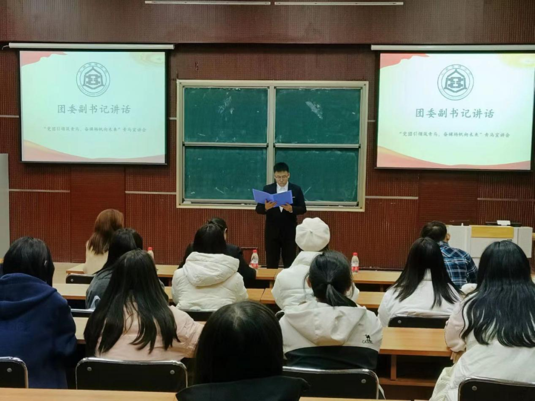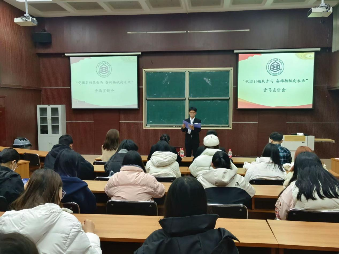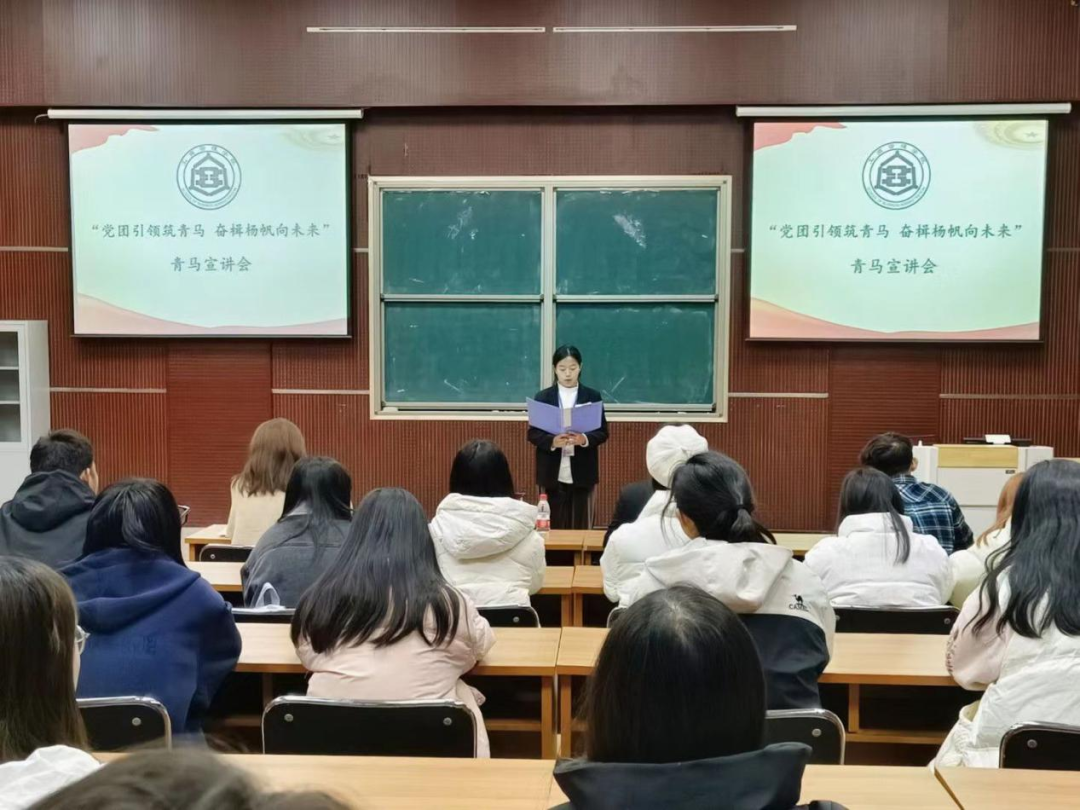 为深入学习贯彻党的二十大报告中关于青年工作的重要思想,引导广大工商学子坚定共产主义理想和中国特色社会主义信念,11月23日下午,suncitygroup太阳集团开展“党团引领筑青马,奋楫扬帆向未来”主题宣讲活动。本次活动由刘树状、高艺宁、秦培召、李祺祺四位优秀青马学员代表发言,学院团委副书记王子穆到场,2023级部分团员参加。