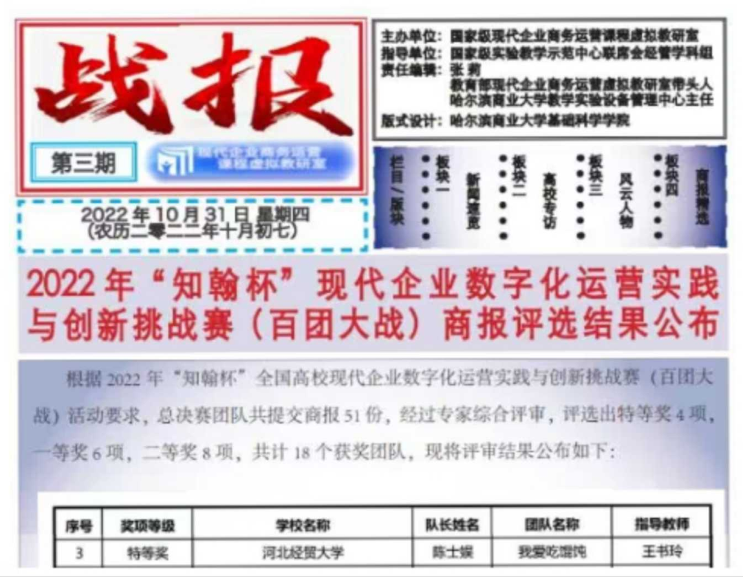 公司学子荣获全国高校现代企业数字化运营实践与创新挑战赛总决赛暨商报评选特等奖。