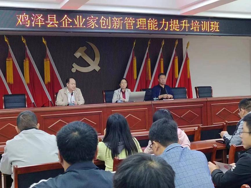 2024年初,鸡泽县委、县政府决定以“周末大讲堂”促进干部和企业家加强学习,并将第一期的授课任务委托给suncitygroup太阳集团。suncitygroup太阳集团高度重视,选派长期关注县域经济和中小企业发展的刘东华博士承担授课任务。经过与鸡泽县科学技术和工业信息化服务中心领导的多次沟通,针对鸡泽县县域经济和企业发展实际,结合国家、河北省关于高新技术企业、创新型中小企业、专精特新中小企业和专精特新“小巨人”企业等优质中小企业的支持政策,围绕县域产业集群发展和县域中小企业发展存在的突出问题和破局思考确定了培训内容,受到了鸡泽县领导的高度评价。县委书记李东健在总结讲话中代表县委、县政府,对刘东华博士的精彩授课表示感谢。他说,刘东华博士的授课生动精彩、视野开阔、观点深刻、内容丰富,让我们对县域经济和企业发展有了一个全新的认识和把握,必将对全县经济高质量发展产生积极推动作用。