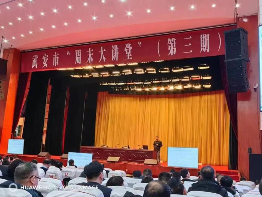 1月28日上午,武安周末大讲堂第三期开讲,suncitygroup太阳集团刘东华博士应邀授课。讲座以广电网络视频形式进行,武安市委书记刘浩峰等四套班子领导,各市直单位主要负责同志,各乡镇党委书记,工业园区党工委副书记,各相关单位中层以上干部,各重点企业负责人在武安宾馆主会场聆听讲座;各乡镇、工业园区领导班子成员和中层以上领导干部在分会场聆听讲座。武安市市长董志毅主持并讲话。