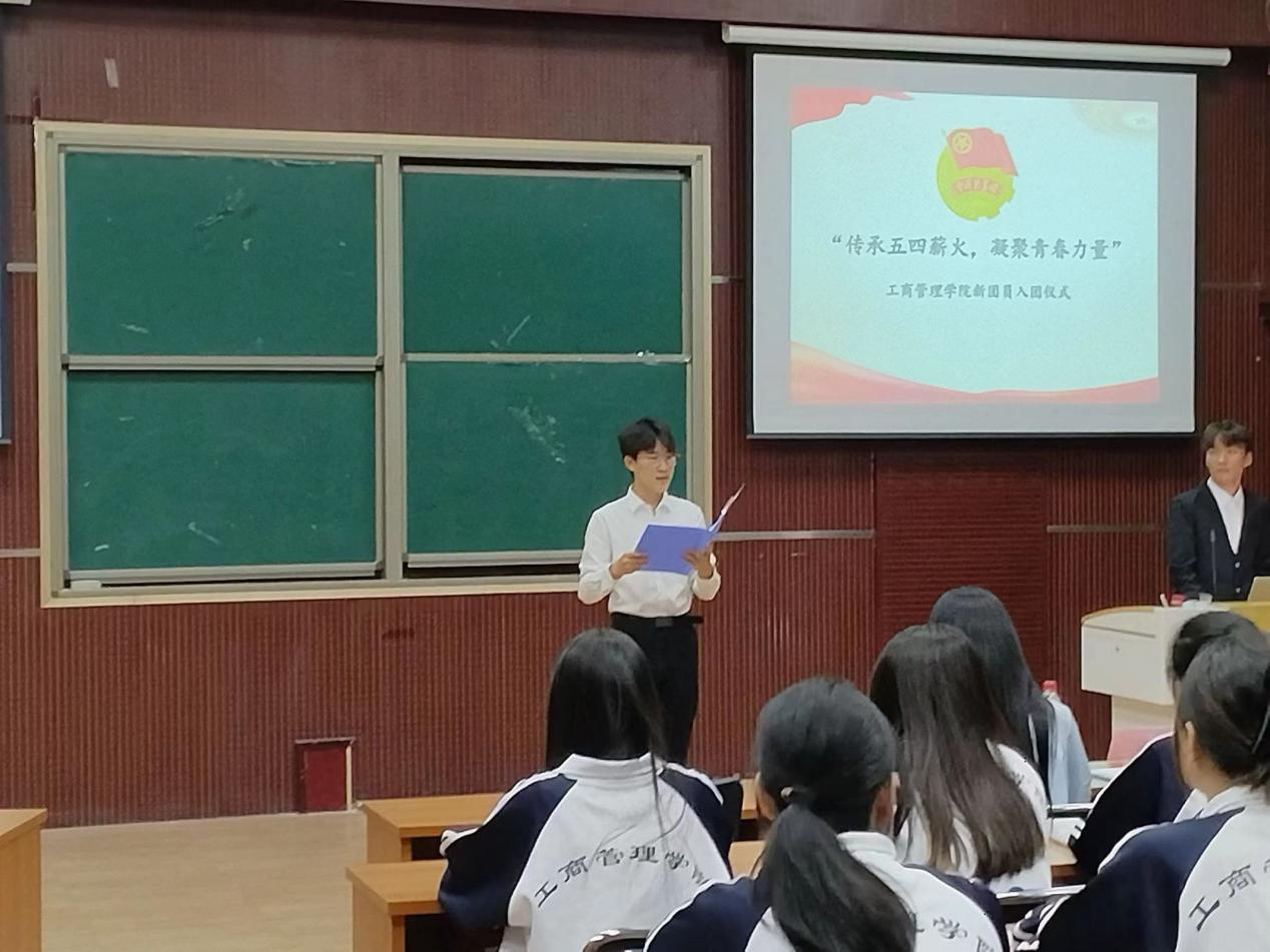 随后,团委事务组织中心负责人李祺祺带领新团员做入团宣誓。新团员代表喻常恩发言,他表示,加入共青团让我们有了更多的责任和使命,我们将严格要求自己,遵守团的章程,认真履行团员义务,时刻牢记团员的身份,发挥团员的先锋模范作用,用自己的行动去影响和带动身边的同学,共同进步。