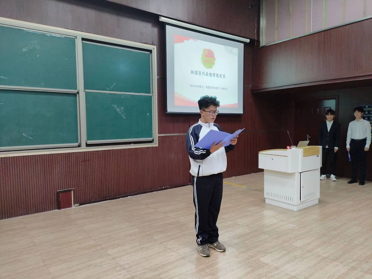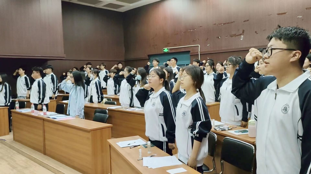 会议伊始,全体起立,目视国旗奏唱国歌。主持人郝路航说明入团仪式的意义是引导新团员树立正确的世界观、人生观、价值观,引导新团员融入团结奋进、追求共产主义的团组织中,培养其为社会主义事业贡献力量的意识和责任感。随后,主持人宣布新团员名单。