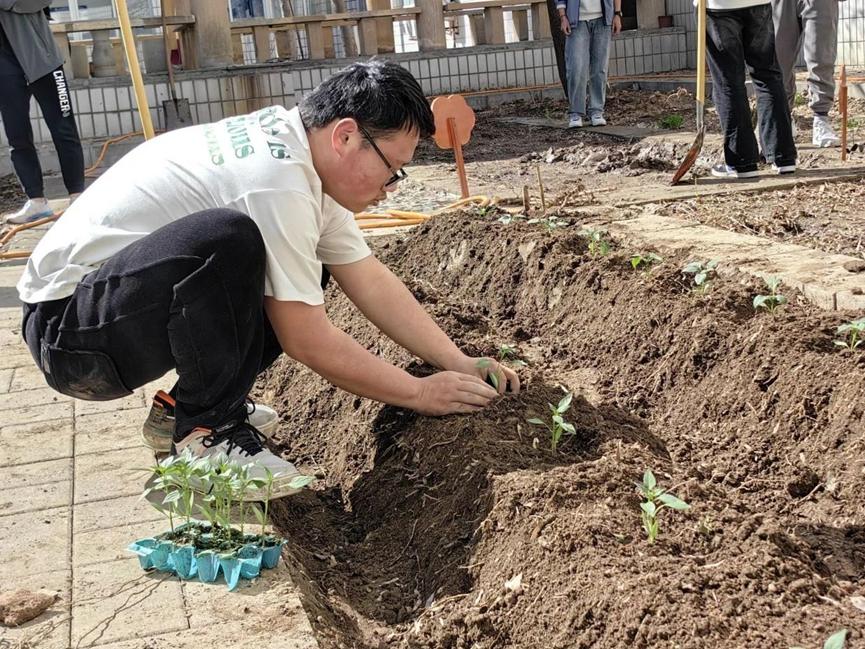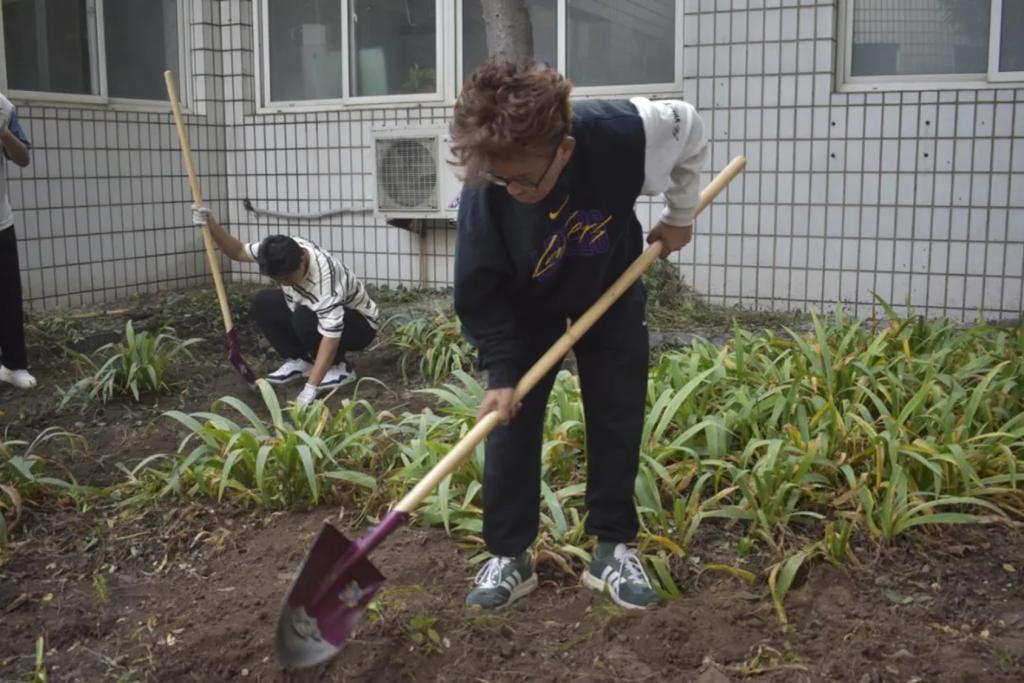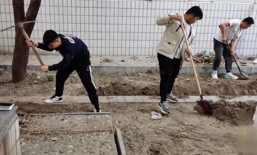同学们齐聚在劳动教育实践基地种植园,他们手持工具,除去原有的杂草,让土地逐渐露出它原本的面貌。接着,他们拿起锄头,用力地翻动着结块的土壤,使其变得松软而肥沃。同学们齐心协力,共同为这片土地注入新的生机与活力,展现出了青春的朝气蓬勃。