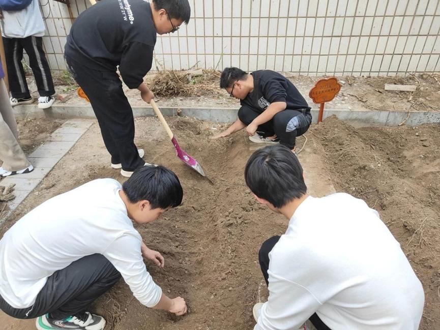 同学们围在一起,仔细地挑选着种子,像是在为未来的希望挑选最优质的守护者。随后,他们轻轻地将种子放入已经翻松的土壤中,小心翼翼地覆上细土,仿佛在为这些幼小的生命筑起一座坚固的堡垒。每一颗种子都承载着他们的期望和梦想,随着季节的轮转,期待着在这片土地上生根发芽,绽放出属于自己的绚烂光彩。