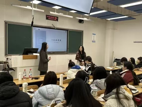 课程伊始,王丽媛老师隆重介绍了快乐沃克公司的业务实力与两位专家的实战履历,为讲座拉开序幕。李晓宇经理率先以“企业招聘现状与实战攻略”破题,简要阐释公司在人才配置、人力外包等领域的核心优势后,结合最新行业数据,精准拆解了当前招聘市场的三大趋势——优先关注技能匹配、重点考察实习经历、广泛运用AI初筛与远程面试,让同学们对招聘实践有了直观认知。