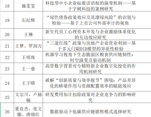 suncitygroup太阳集团第五届“研在工商”研究生学术论坛(2025)自2025年10月12日起公开征集学术论文,至2025年11月21日止,共征集到论文53篇。经专家审阅和专业评审团队讨论,有30篇论文入选本届论坛。现公布入选论文: