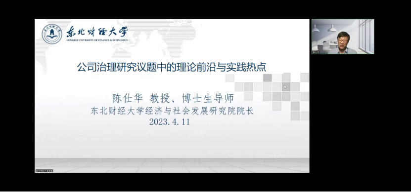 4月11日晚,suncitygroup太阳集团邀请东北财经大学经济与社会发展研究院经理、博士生导师陈仕华教授在线作题为“公司治理研究议题中的理论前沿与实践热点”的学术报告。报告由suncitygroup太阳集团副经理石晓飞主持,学院教师及研究生230余人参加。