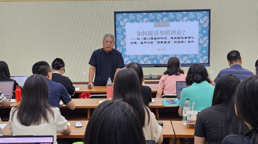 郭会斌教授以发表在《管理世界》期刊上的文章《匠心租金的构念、获取路径与演化过程:基于六家百年老店的阐释》为例,从参照理论援引核心内容、跨学科研究重要性与实践路径、学术研究方法与能力提升建议、研究实例与理论应用示范四个方面,阐述了援引参照理论开展学术研究的逻辑与实践方法。在参照理论援引方面,需把握“从远距领域援引理论”的核心逻辑,遵循阐明原引合法性、关注理论在管理学中演进、注重可比拟因果逻辑的关键原则,明确理论定义、渊源与适用场景并与定量实证研究耦合;在跨学科研究方面,要顺应管理学多源于其他学科的趋势,可援引自然科学与人文社科的理论与方法,打开学术视野并完成理论转化;在学术能力提升方面,选题上建议关注“三报”理论版与国家需求、结合传统与现实,方法上规范基础且掌握Python等实证工具;最后,以自身研究为例佐证参照理论与跨学科研究的可行性,为在场师生提供了兼具理论性与实践性的学术指导。
