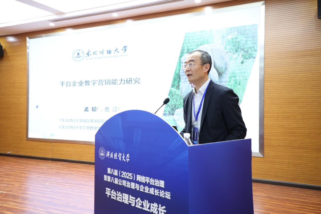 东北财经大学国际商学院经理孟韬教授作题为“平台企业数字营销能力研究”的主题报告。该研究基于动态能力理论、平台生态系统理论以及实践基础理论,运用多源文献数据与企业调研数据进行了实证检验,研究了平台企业数字营销能力的概念维度、测量方法、前因及其对数字营销绩效的影响机制。其创新之处在于理论整合与方法创新,即通过质性元分析构建了数字营销能力的多维结构,并开发出具有良好信效度的测量量表,为数字营销能力的理论建构与实证研究提供了系统框架。